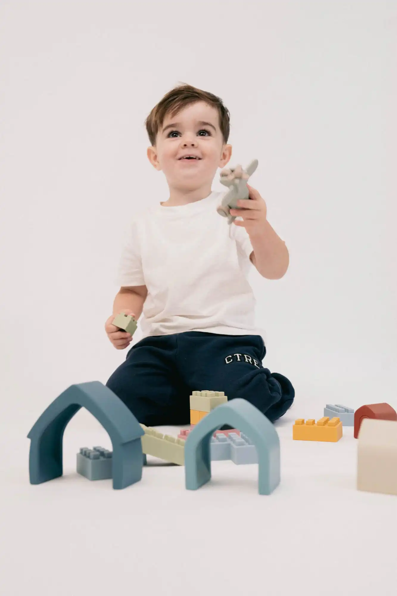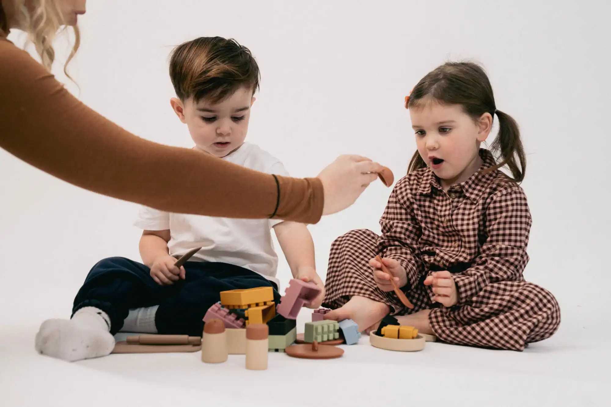 For us, that now looks like choosing toys that invite the children in, where I can join for a moment and then gently step back. Open-ended toys give them the freedom to make up their own ideas, and that actually makes things easier for us too. I love toys that move with us from room to room: a tower of blocks growing beside me while I cook lunch, or a full vet appointment for the soft toys happening at my feet as I fold the washing. They stay close, they play, they learn — and I get to breathe.